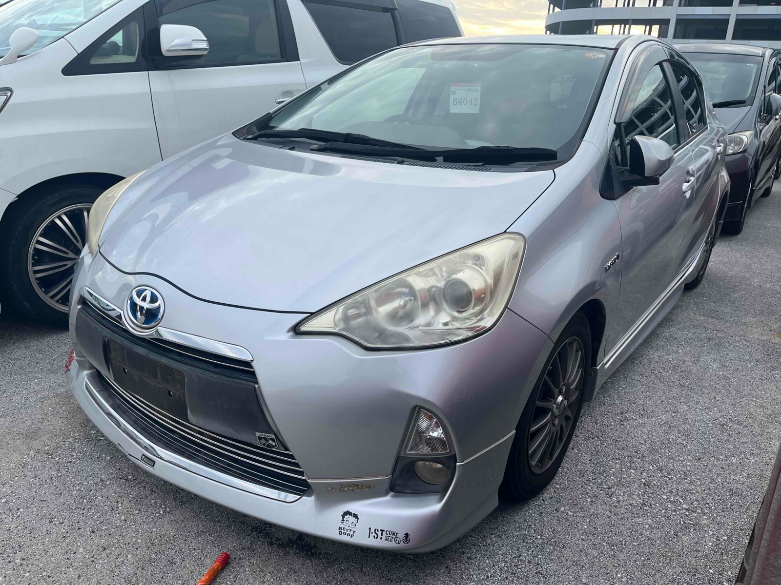 Discover the 2012 Toyota Aqua Hybrid, a car built for efficiency and comfort. With its hybrid technology, you get an eco-friendly ride that saves on fuel. Its sleek silver finish and automatic transmission make it a joy to drive, whether you're in the city or on the open road. Stay comfortable with features like a reliable air conditioner and power windows. Safety is top priority with airbags, anti-lock braking, and a traction control system that all work together for a secure drive. Your personal items stay safe with the built-in anti-theft system. This car's low mileage of just 64,000 means it's ready for many more adventures. The UV glass and toned windows offer privacy and protection from the sun's rays. Enjoy driving a car that matches performance with style and comfort.