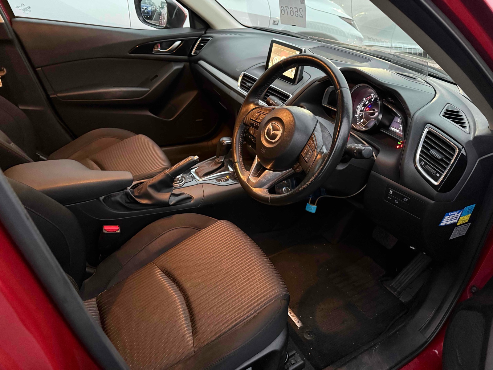 The 2014 MAZDA Axela in red is a stylish and practical choice. It runs on petrol and features automatic transmission with front-wheel drive. This makes it a smooth and fuel-efficient car to enjoy every day. Inside, you'll find comfortable seating with foldable rear seats for extra space when needed. Enjoy the convenience of power windows and the safety of multiple airbags and an anti-lock braking system. The car also includes traction control and electronic brake-force distribution for added confidence on the road. Safety and security are top priorities with features like brake assist, anti-theft system, and xenon headlights for better visibility. This car also includes tinted UV glass and fog lights. With a mileage of 84,000, this MAZDA Axela is ready to take you wherever you need to go.