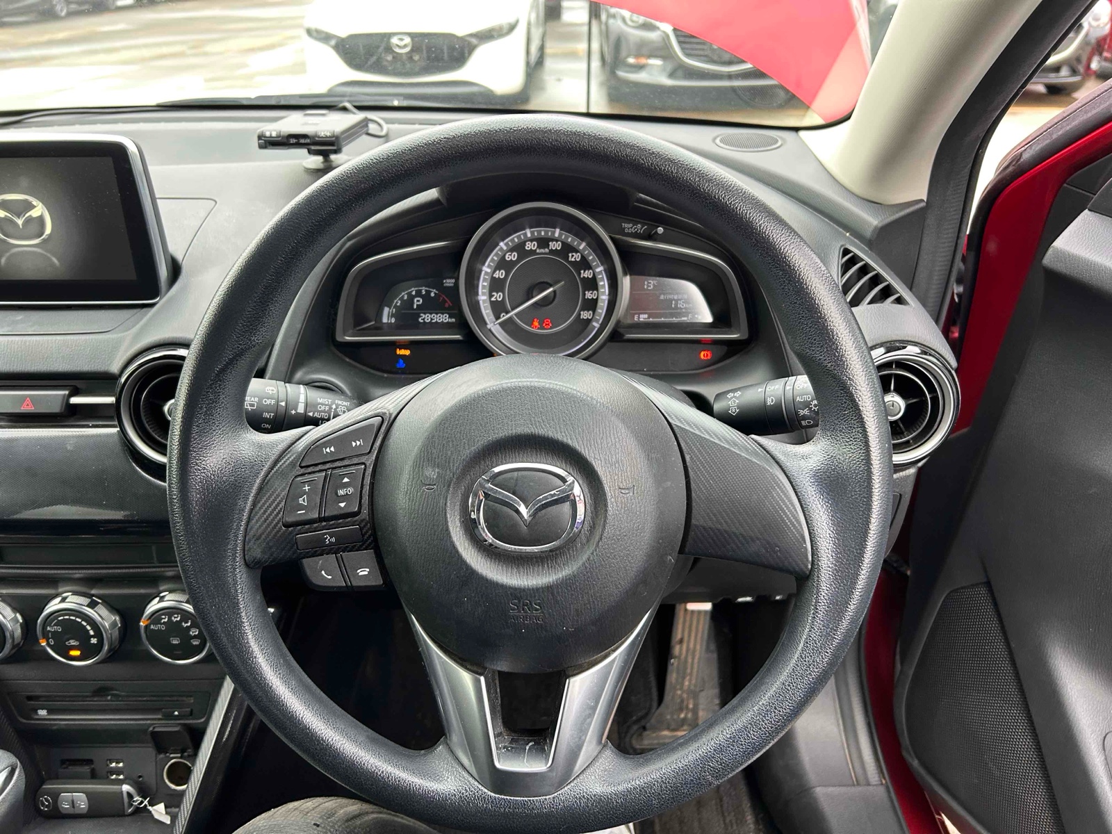 The 2015 Mazda DemioPetrol features a Red exterior and interior. This Hatchback is built for drivers seeking efficiency, comfort, and power. A reliable engine (Engine Code: P3-VPS, Model Code: DJ3FS) with 92 of power and of torque can be found under the hood. FWD and a Automatic make the car easy and smooth. This vehicle boasts a fuel efficiency of just 4.1, providing a great mix of power and economic savings. There are lots of features inside the car that are meant to make driving better. You can use the key features including Air Conditioner, Power Windows, Foldable Rear Seat, Airbag, Airbag etc. This car's mileage has been checked to be 28,900 KM.